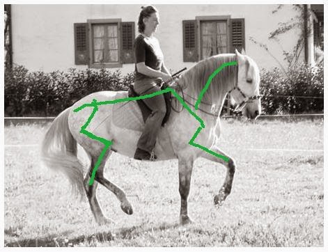 Notera även den lyfta ryggen och hur den lyfter upp ryttaren.