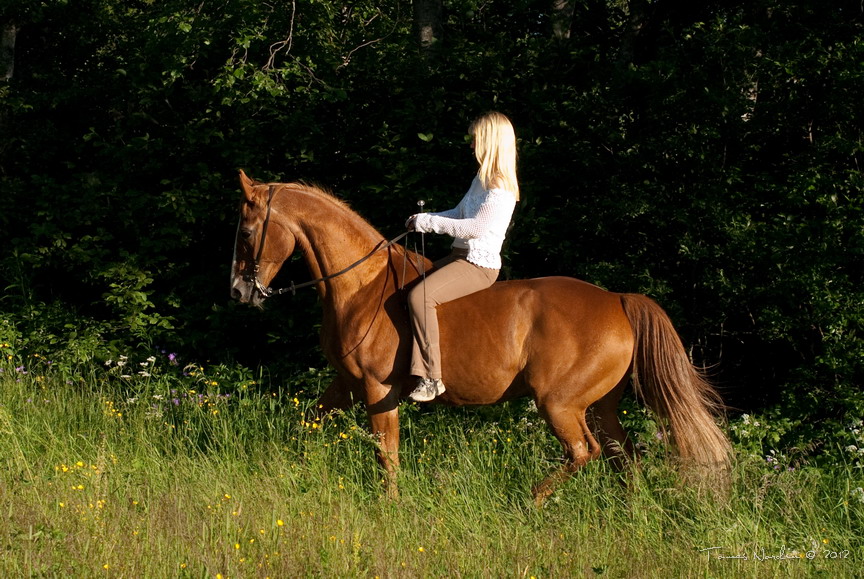 Och matte, ja hon måste ju sitta på ryggen *visslar*